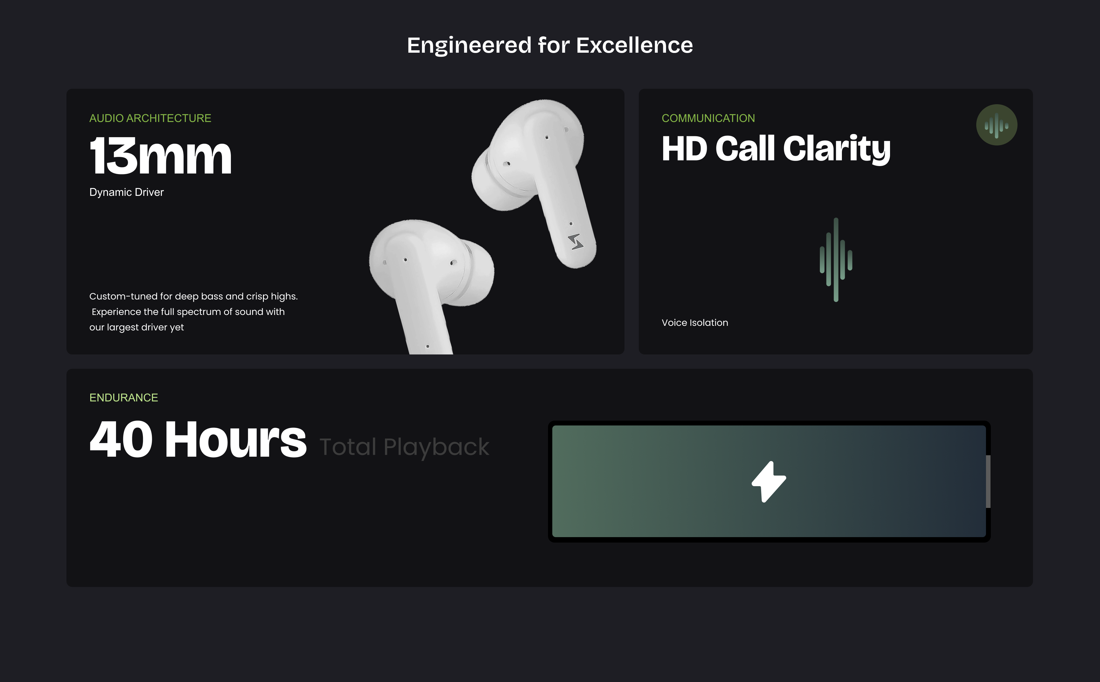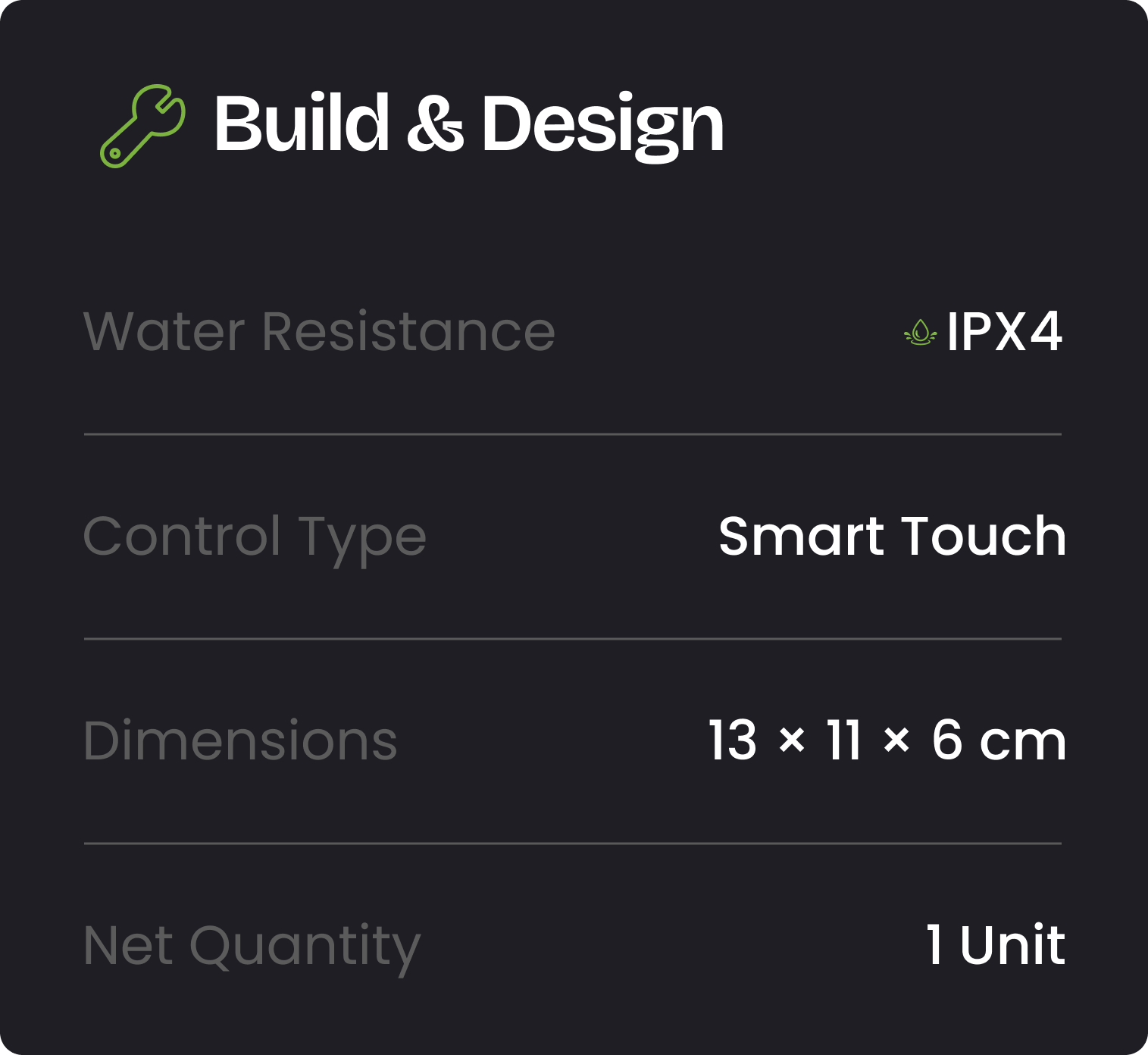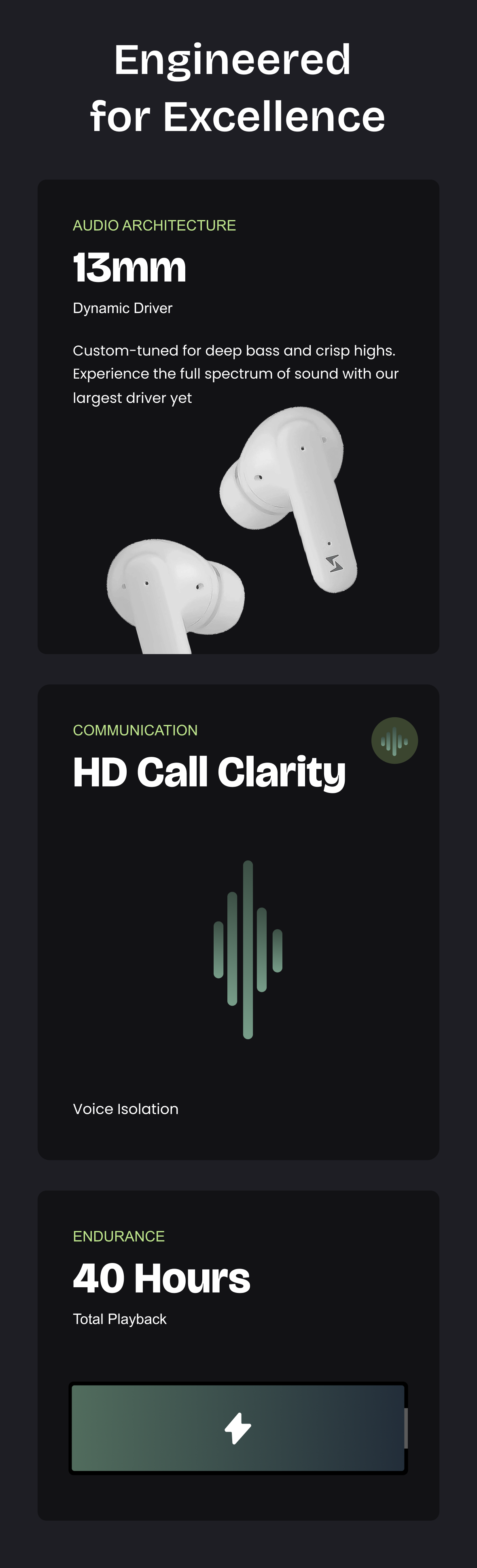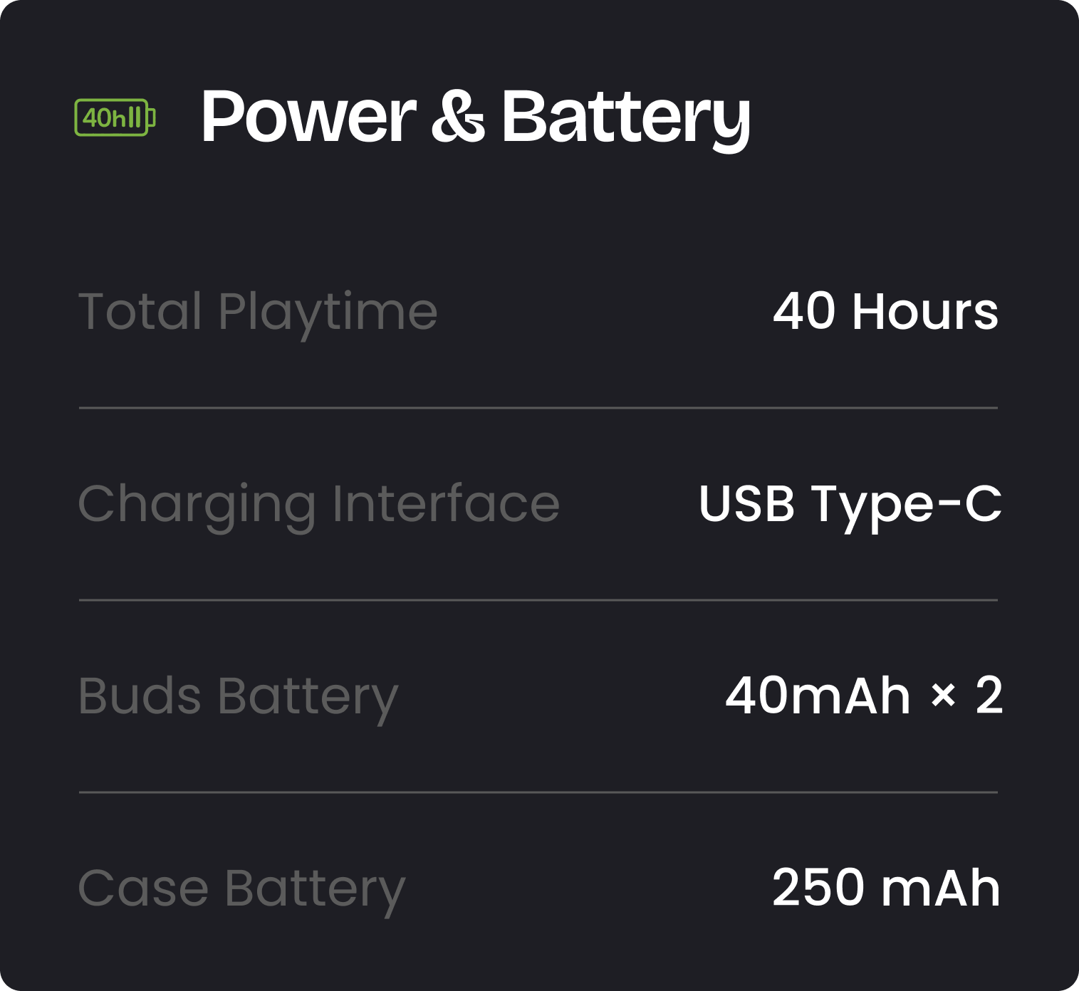 - Net Contents - 1N Earphones, 1N Type-C Cable, 1N User Manual, 1N Warranty Card, 2 Pair Extra Eartips
